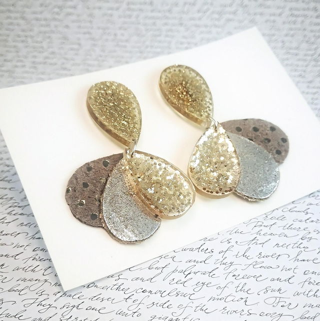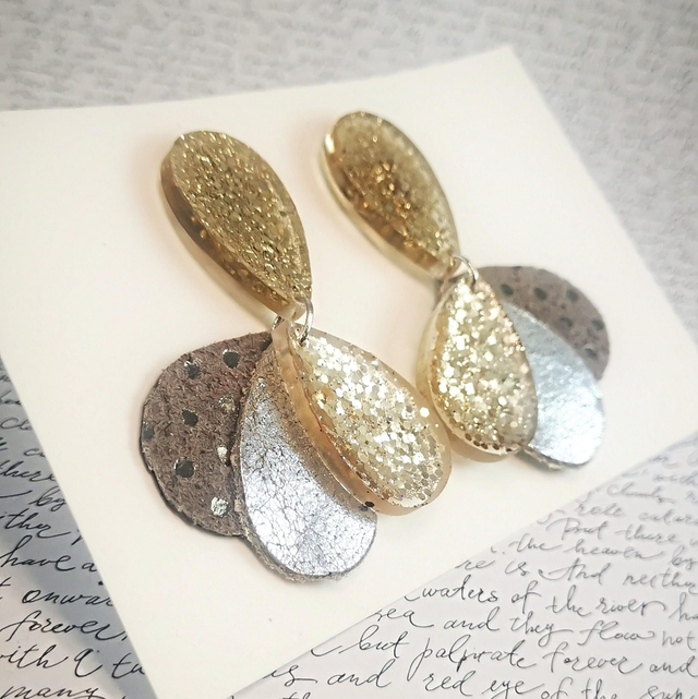 Boucles d'oreilles Paon MM beige doré