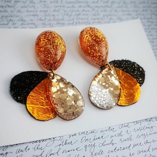 Boucles d'oreilles Paon MM cuivré orange
