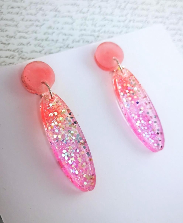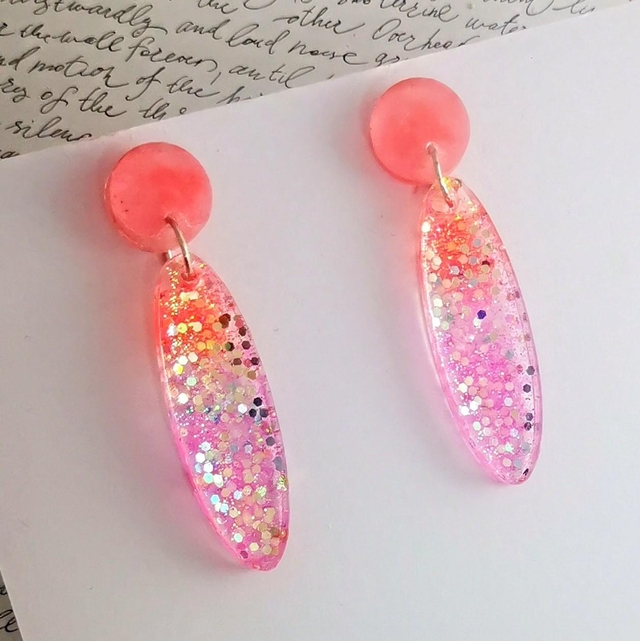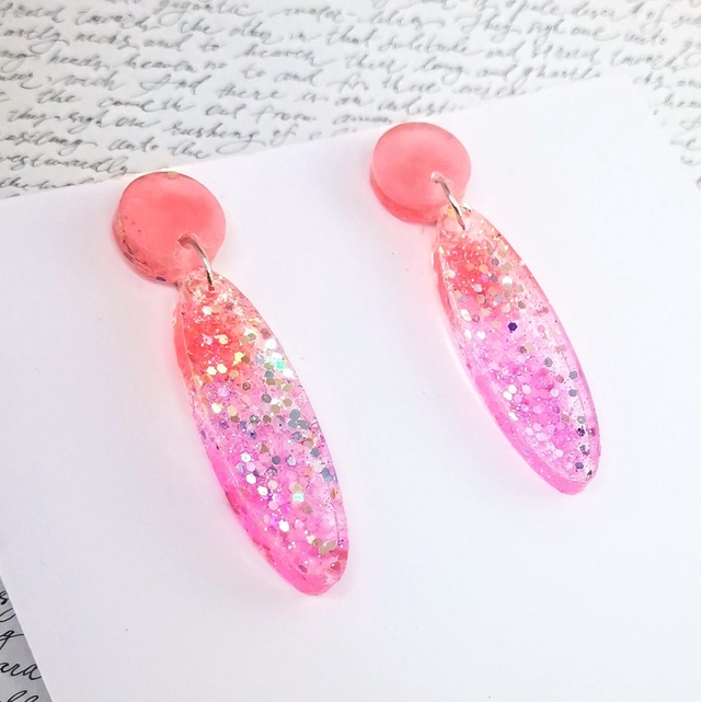 Boucles d'oreilles Elia, puce corail mat et ovale en Baaméria glossy dégradée rose et corail.