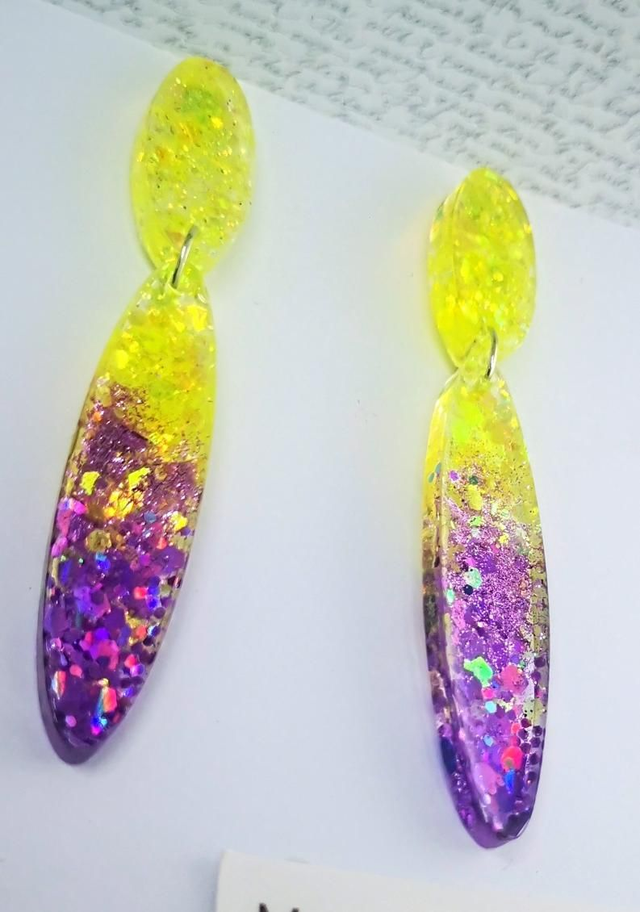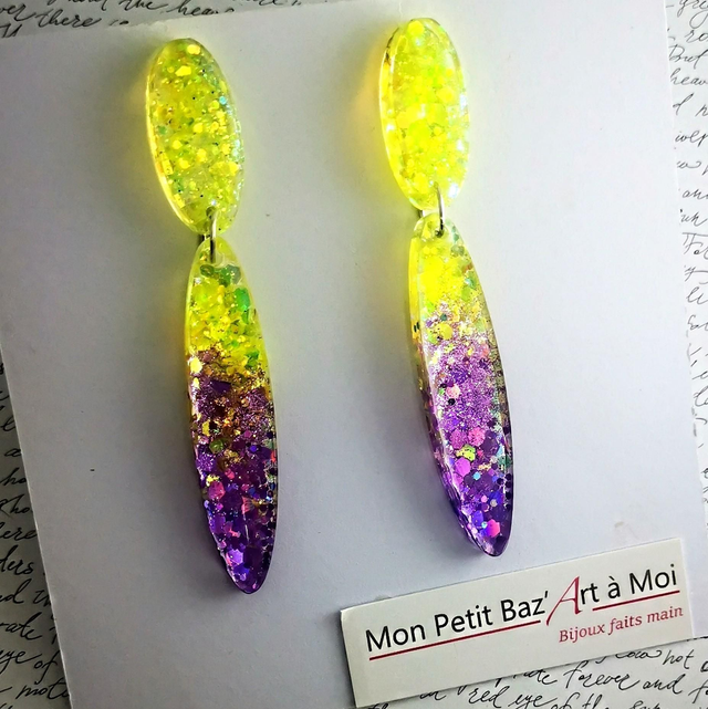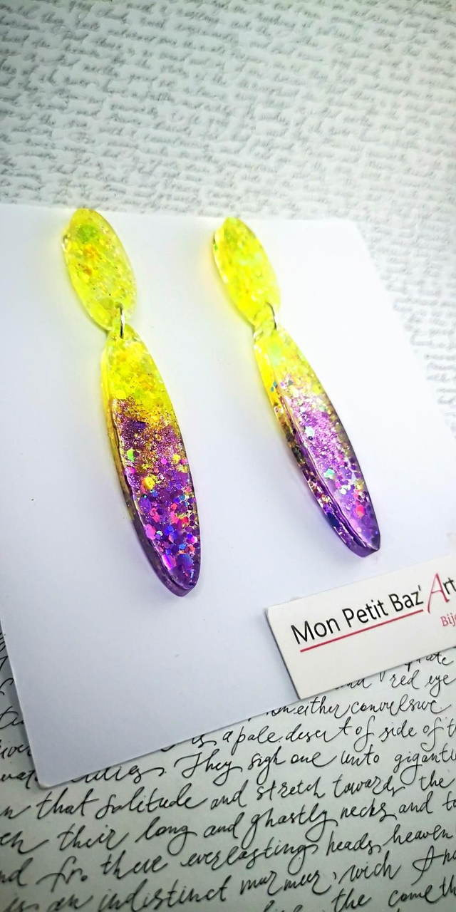 Boucles d'oreilles Elia, Baaméria glossy dégradée jaune fluo violet